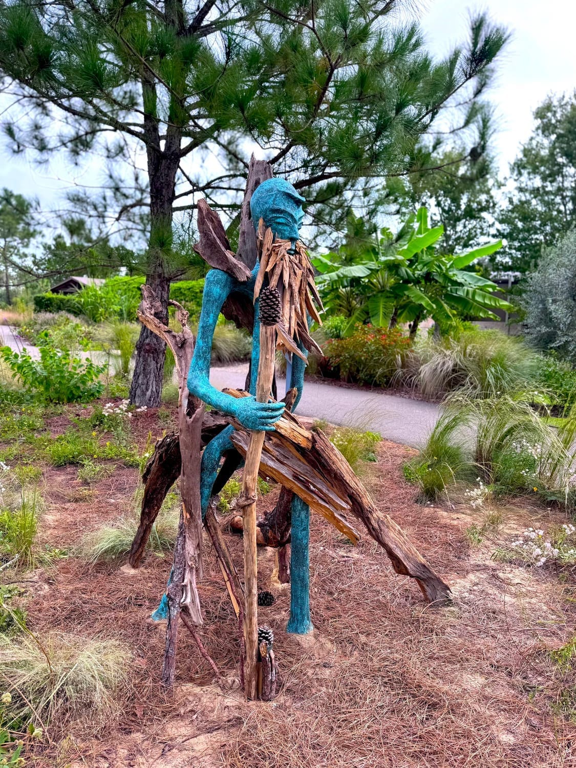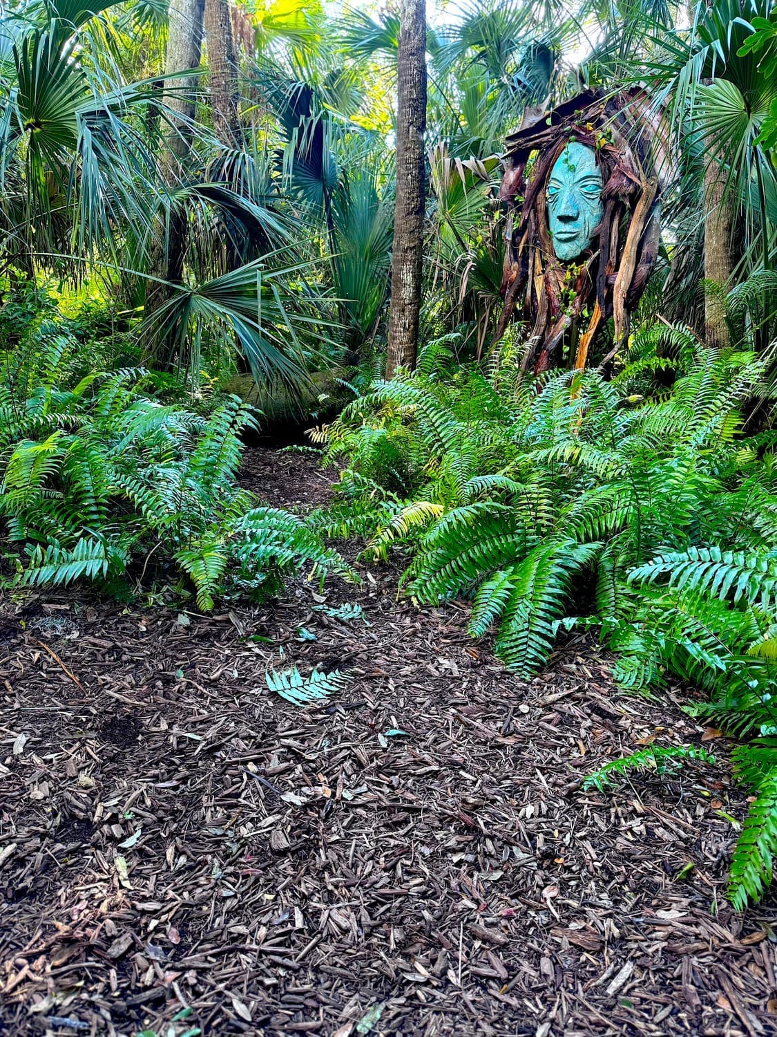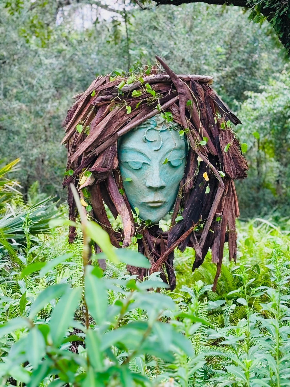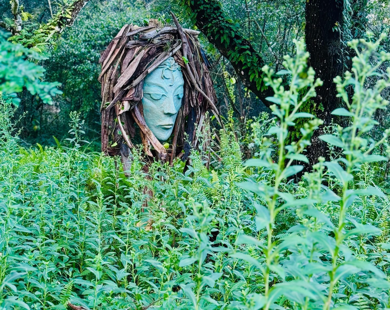 driftwood, clay, Pal Tiya clay, cement, rapid-set, paint, framed on treated wood.