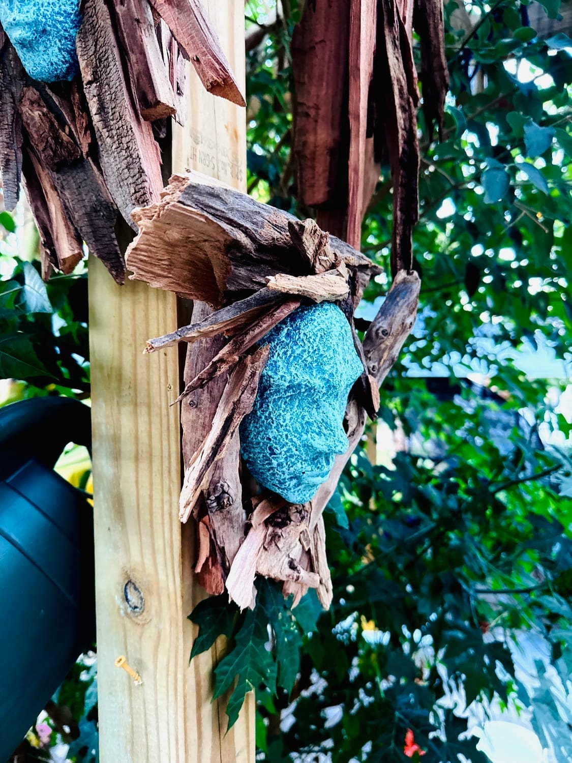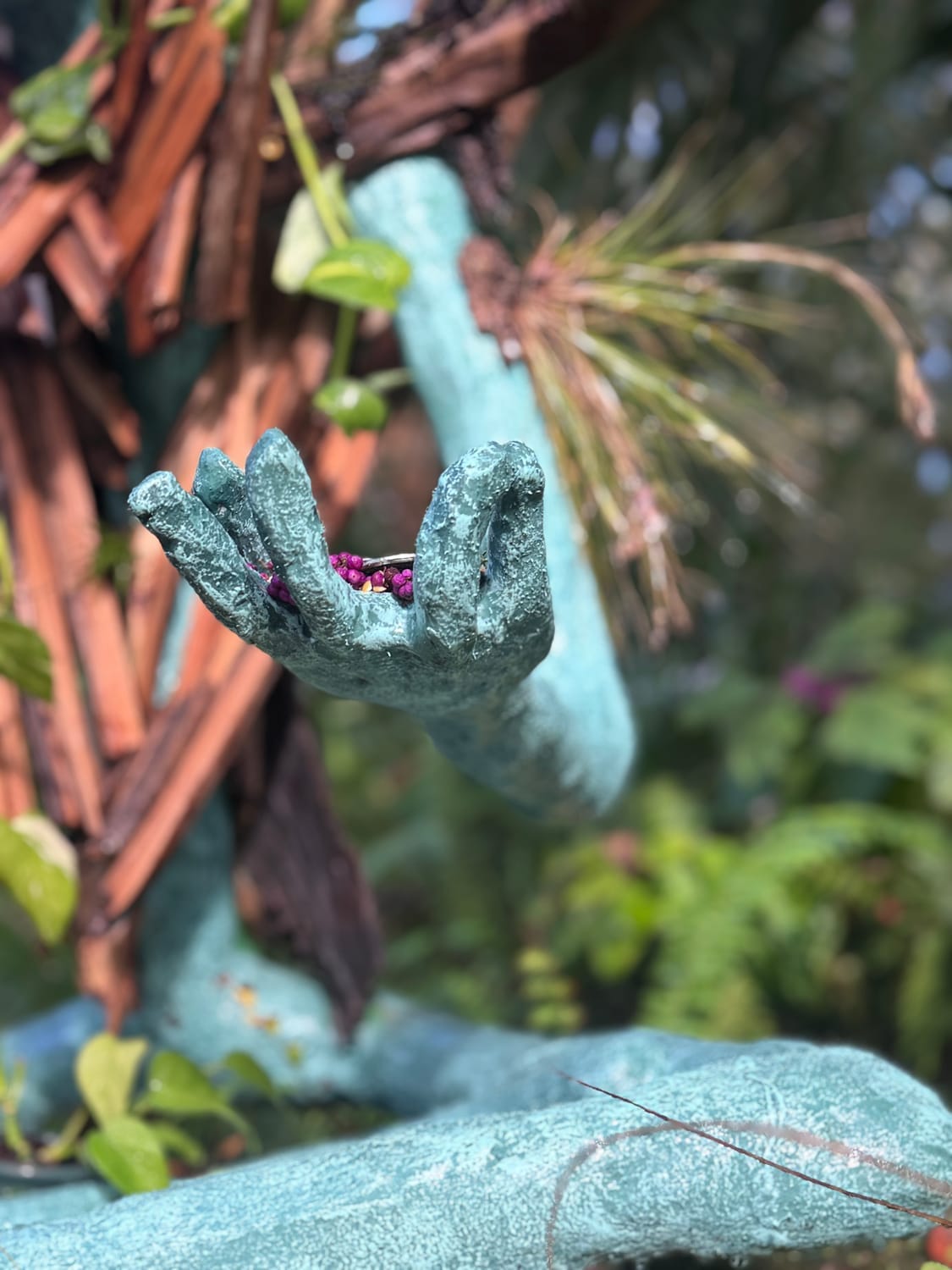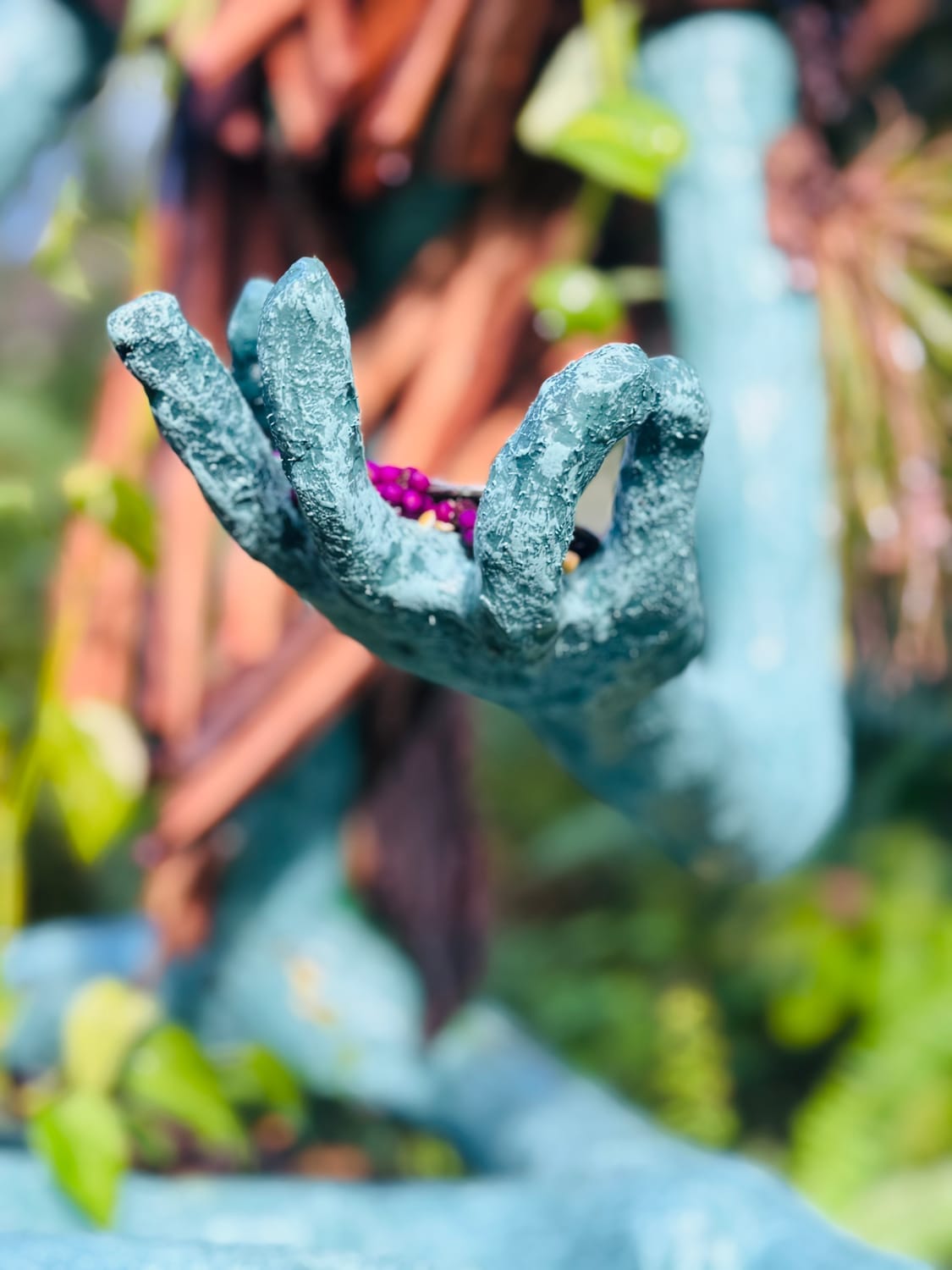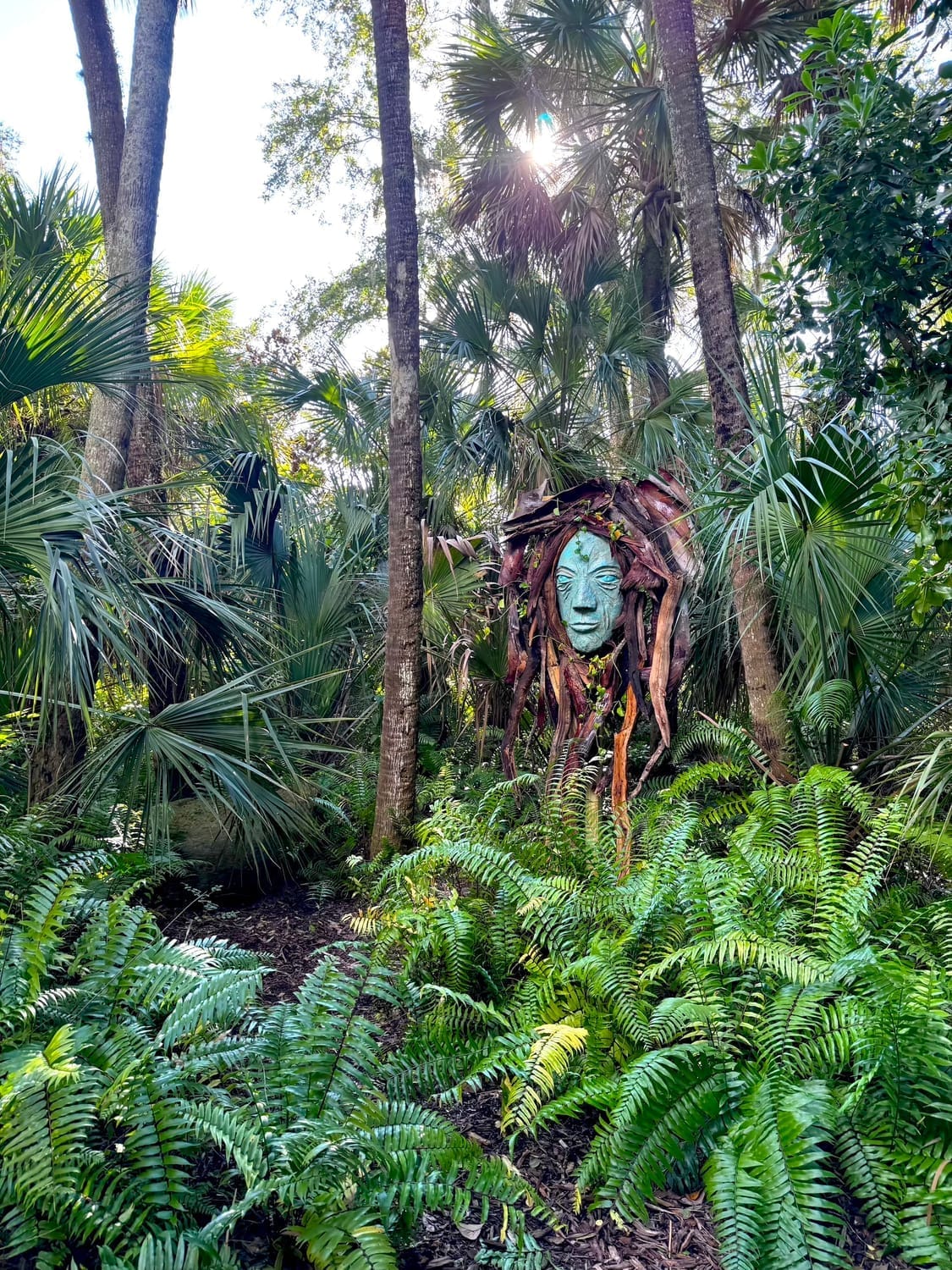 driftwood, clay, Pal Tiya clay, cement, rapid-set, paint, framed on treated wood.